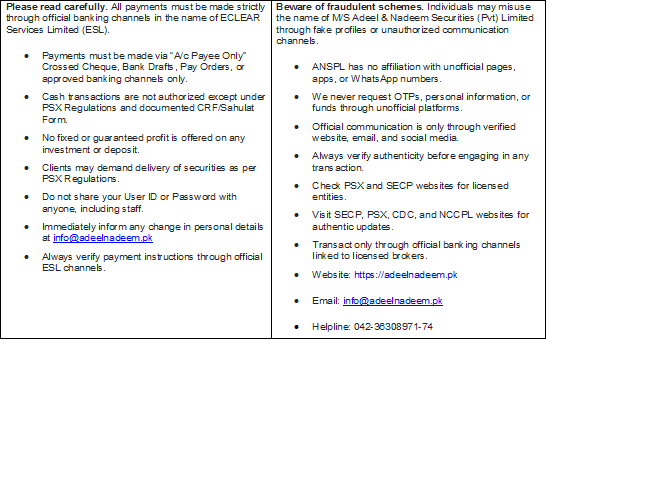 Adeel & Nadeem Securities (Pvt) Ltd TRE Certificate Holder, Pakistan Stock Exchange Ltd |